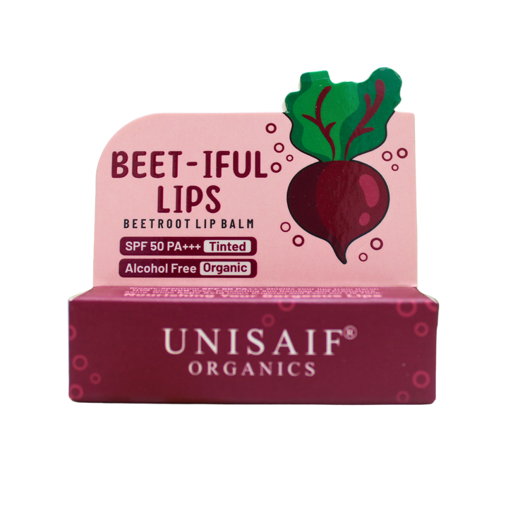 UNISAIF's beetroot lip balm is a highly replenished form of lip care that preserve and improve lip nourishment. It produces a delicate shine in them by forming a barrier film of moisture. Crafted with organic shea butter, unfiltered beeswax, avocado oil, almond oil, coconut oil, and vitamin E, that hydrates your lips naturally. During use, it feels buttery soft and glides on your lips smoothly.